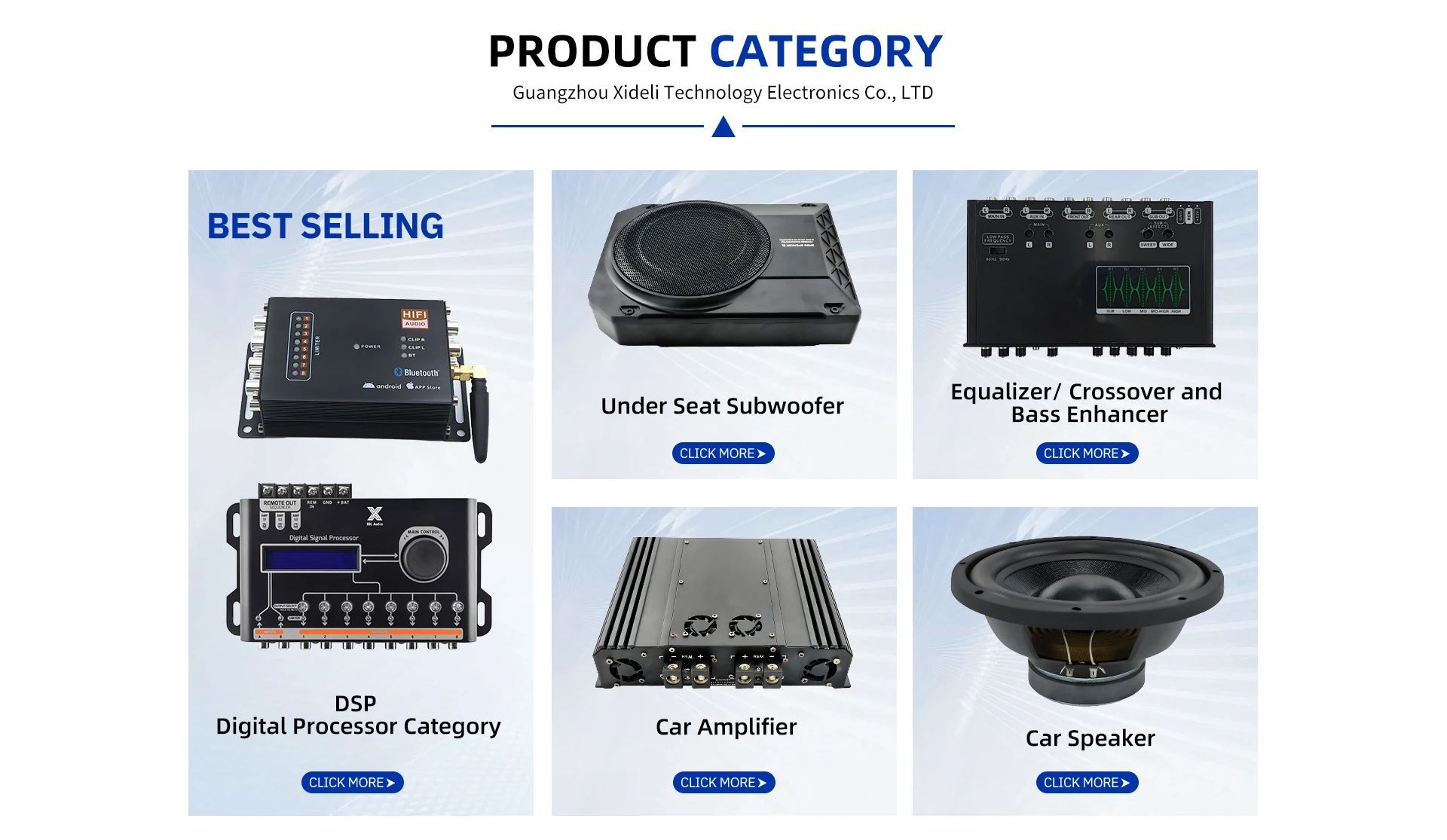 Produk utama: Amplifier mobil, Speaker Mobil, Equalizer Mobil & Crossover, Subwoofer jok bawah, DSP mobil