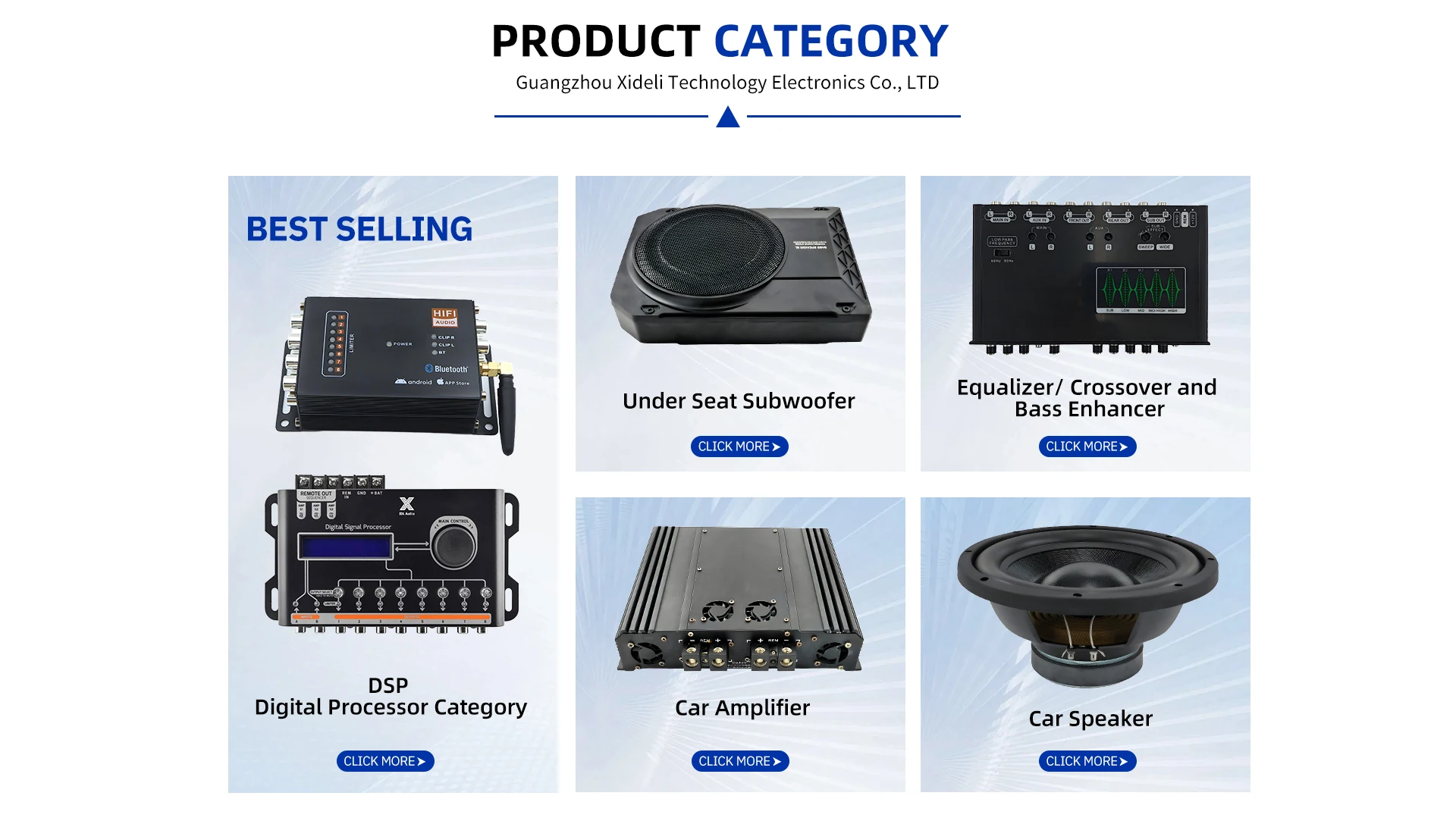 Ana ürünler:Araba amplifikatörü, araba hoparlörü, araba ekolayzır ve Crossover,Underseat Subwoofer, araba DSP